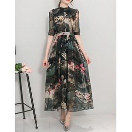 Women's Going out Vintage Swing Dress,Print Stand Maxi ? Sleeve Multi-color Polyester Summer
