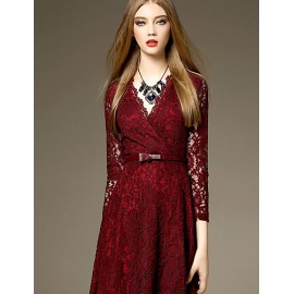 GenderWomen's,OccasionParty/Cocktail,StyleSexy,SeasonSummer,Dresses TypeSheath,ColorRed,PatternPatchwork,DesignLace,DetailsBelt Included,NecklineV Neck,Waistline TypeHigh Rise,ElasticityMicro-elastic,FabricCotton,Look After MeHand wash,Machine wash,Dress LengthMaxi,Sleeve LengthLong Sleeve,Clothing Shoulder Width (cm)M:36,L:37,XL:38,2XL:40,Clothing..
