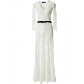 GenderWomen's,OccasionParty/Cocktail,SeasonFall,Dresses TypeSwing,ColorBlack,White,Pink,PatternSolid,DesignLace,DetailsLined,NecklineV Neck,ThicknessMedium,ElasticityMicro-elastic,Look After MeWash separately,Dress LengthMaxi,Sleeve LengthLong Sleeve,Clothing Bust (cm)S:88,M:92,L:96,XL:100,XXL:104,Clothing Waist (cm)S:72,M:76,L:80,XL:84,XXL:88,Clot..