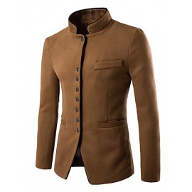 Men's Going out / Casual/Daily Simple Coat,Solid Long Sleeve Blue / Red / Black / Brown / Gray Cotton