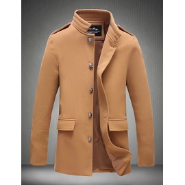 Men's Fashion Single-Breasted Solid Woolen Coat